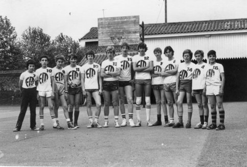 Equipe de jeunes dans les années 1970. De gauche à droite: Hosland, Dominique Zamorski, Hervé Loison, Patrick Volliot, Christian Laurent, Françis Porebski, Christophe Vesolowski, Damien Kusz, Jean-Michel Fauchois, Joël Laurent, Bernard Leroy, Jean-Charles Ostak, Lucien Greco.