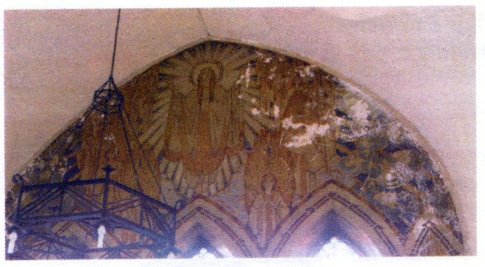 La fresque représente l’Assomption de la Vierge Marie. Notons le style épuré et élégant , l’utilisation de lignes droites, de formes géométriques et de tons ocres/orangés et bleus, propres à la période Art déco, qui est le style artistique dominant des années 1920/1930. .