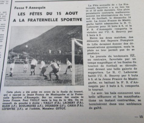De nombreuses personnes se reconnaîtront à la vue de ces photos qui ont marqué la belle histoire de la Fraternelle Sportive d'Annequin, sous la présidence de Charles DUBOIS.