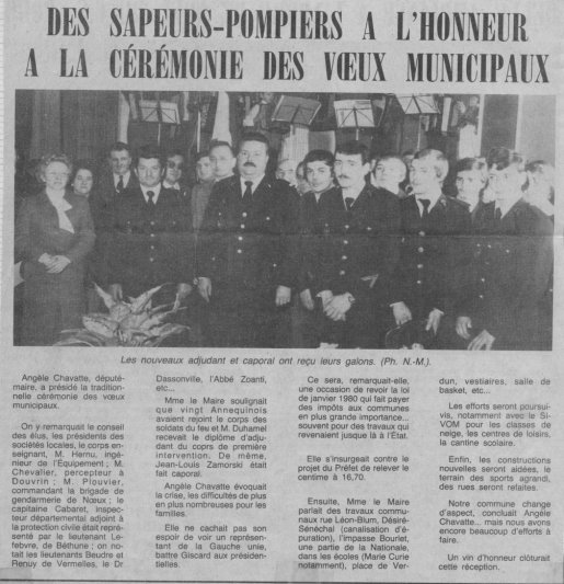 Les sapeurs pompiers, dont le nombre a toujours évolué autour de la vingtaine, étaient regroupés au sein d’un corps de première intervention (CPI), dont le siège était situé à la mairie. Ils participaient régulièrement à des exercices, aux congrès départementaux ainsi qu'aux manifestations patriotiques et locales, notamment le Téléthon. Les différents chefs de corps connus depuis 1945 jusqu’au 30 décembre 1996, date de la dissolution, sont Henri MELIN, Paul COUPIN, Claude DUHAMEL, Jean-Louis ZAMORSKI, René DUPONT.